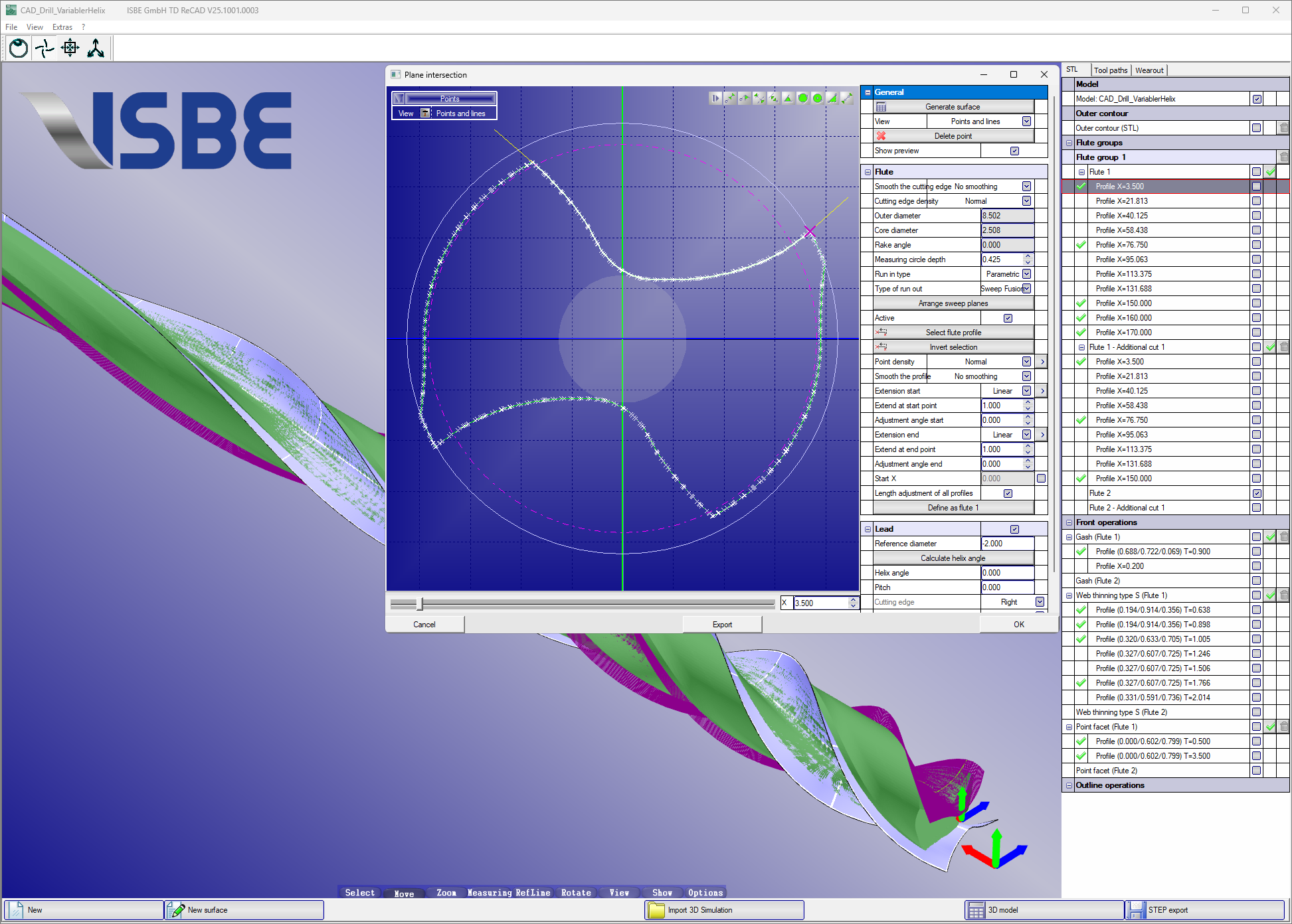 Spannuten mit variabler Steigung und Profilen modellierenErmöglicht die Rekonstruktion von Werkzeugen mit sich ändernder Nutengeometrie – z.B. bei variabler Steigung, Drall oder Kerndurchmesser. Ideal für Hochleistungswerkzeuge mit anspruchsvollen Schneidengeometrien.